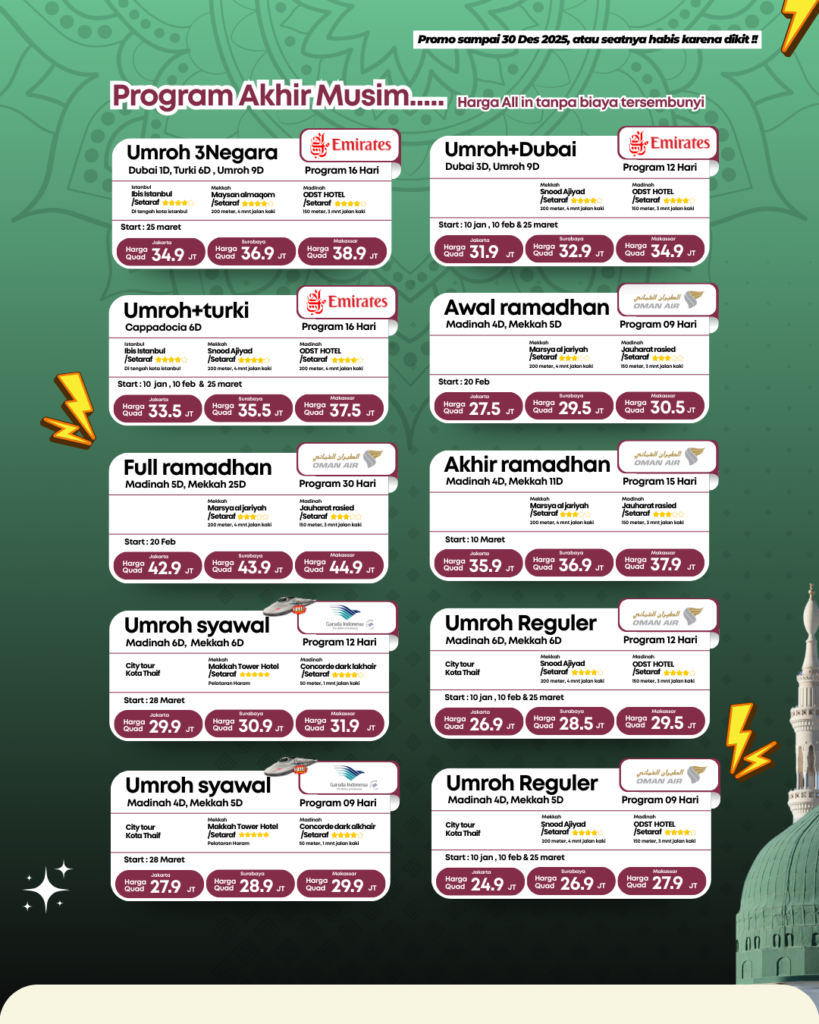 Kalau kamu mau buat paket secara reques bisa hubungi kami, nanti kami bantu untuk hitungkan kebutuhan biaya perjalanan umrohmu, pasti hemat, aman dan menyenangkan